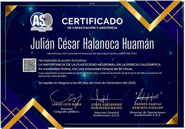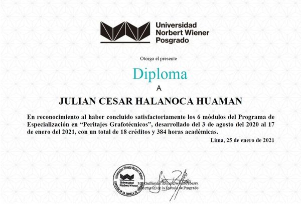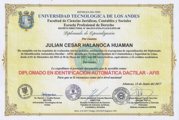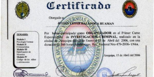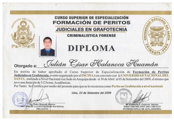 Celular: 960266037. César Halanoca. Profesional con Maestría en Peritación Criminalística y Maestría en Gerencia de Estado y Administración Pública.